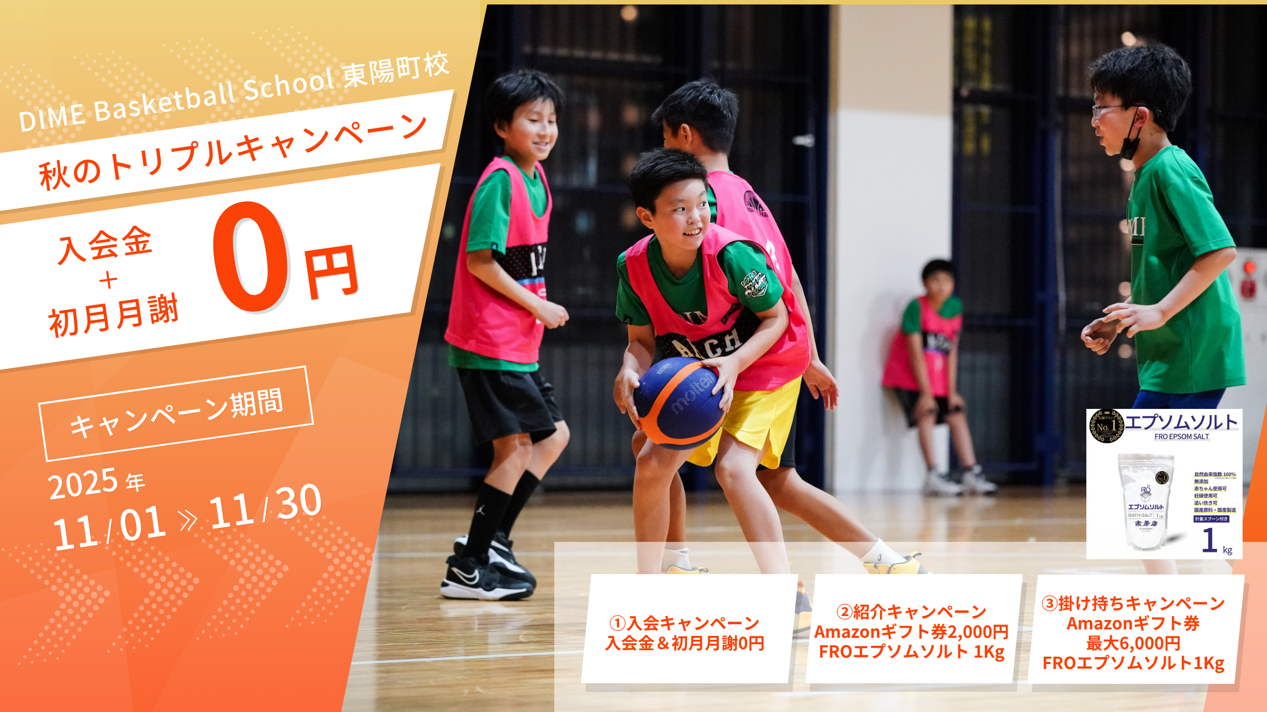 「DIME」には、バスケットボール用語で「アシスト」の意味があります。バスケの技術だけではなく、他者との良好な関係性を構築出来るよう、アシストの精神を持ったプレイヤーに育つように指導いたします。